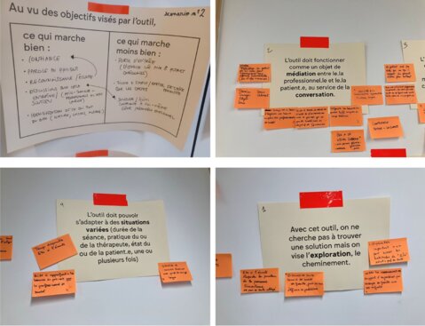 Après cette 2ème session, l'équipe de recherche fait appel à une équipe de co-designers pour concrétiser l'idée d'outil en un objet et faciliter la dynamique collaborative du projet.